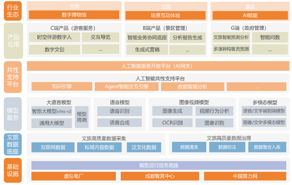 "智旅"大模型依托成都智算中心澎湃算力,構(gòu)建“智算中心+模型運行服務(wù)底座”基礎(chǔ)設(shè)施體系,實現(xiàn)按需調(diào)度、靈活部署,滿足文旅全場景的算力需求。